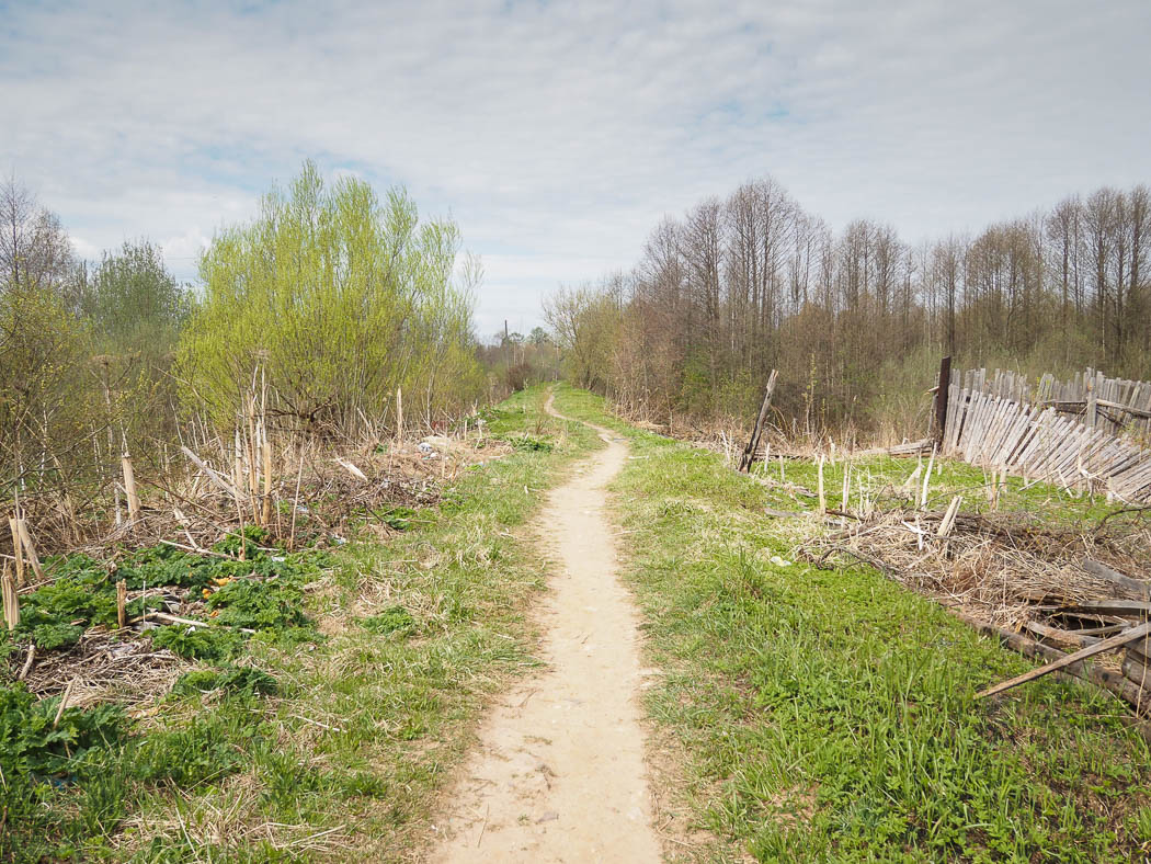 Где-то на окраине Волочка, увидел такую тропу меня стали одолевать сомнения. Много велосипедистов едет по маршруту, он протореный. Но вот тропинки уж больно узкие.