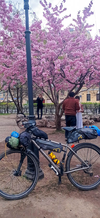 Когда я понял, что заграница нам уже не светит, то купил билет на сапсан до Вышнего Волочка. За день до начала собрал вещи, нагрузил их на велосипед и ранним майским утром стартовал в сторону московского вокзала!