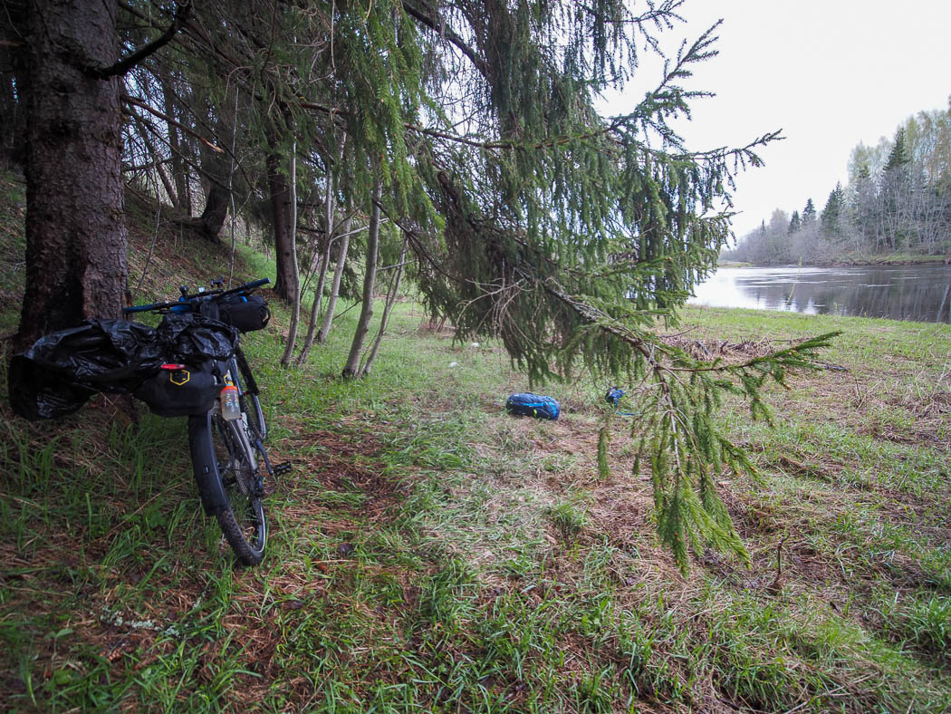 Благо, река рядом. Да, желательно, чтобы с дороги не виден был. Мало ли... проснусь, а велосипеда нет. Место нашлось.